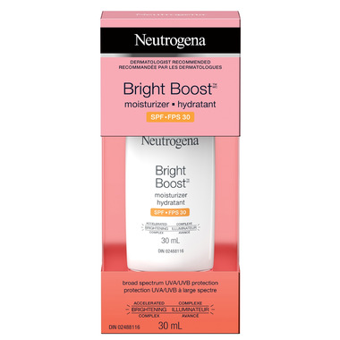 • Neutrogena Bright Boost Moisturizer SPF 30, with Broad Spectrum UVA/UVB protection, is ideal for moisturizing to help brighten and also has anti aging benefits