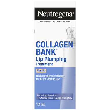 - 14-millilitres of Neutrogena Collagen Bank Lip Plumping Treatment, with a vanilla flavor, helps to preserve collagen for fuller looking lips. Patented Micro-Peptide Technology developed with dermatologists.
