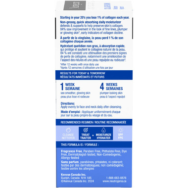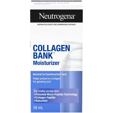 Starting in your 20's you can lose up to 1% of collagen each year. Moisturize to help strengthen the collagen you have & build the collagen you don't with NEW Neutrogena Collagen Bank Moisturizer. This product is enhanced with patented micro-peptide technology that is 2x smaller than leading anti-aging peptides which allows for optimized delivery to support collagen for firmer, youthful-looking skin. This daily face cream with Bakuchiol, a plant-based retinol alternative, is clinically proven to improve early visible signs of collagen decline*. Skin feels instantly hydrated with its lightweight, non-greasy face lotion formula. Use it as a facial and neck moisturizer to smooth the look of fine lines. This collagen cream is gentle for daily use on all skin types, including sensitive & acne-prone skin. Add non-comedogenic Collagen Bank facial; moisturizer from Neutrogena, a dermatologist-recommended brand, to your skincare routine for stronger collagen & plumper skin. *Visible results based on daily use of Collagen Peptide SPF 30 Moisturizer in AM, Collagen Bank Moisturizer in PM over 12 weeks.