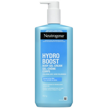• Neutrogena Hydro Boost Body Gel Cream with hyaluronic acid instantly moisturizes dry skin