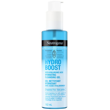 Neutrogena Hydro Boost Hydrating Cleansing Gel gently cleanses and hydrates skin as it lifts away dirt, oil, and makeup. Clinically proven to increase skins hydration level and lock in moisture, this formula with hyaluronic acid leaves skin feeling clean and supple. This gentle lightweight foaming gel transforms into a silky lather to lift away dirt, oil, and makeup.To use this cleaning gel, wet face and apply cleanser to hands. Add water to work cleanser into a silky lather. Massage face gently with this foaming face cleanser and rinse thoroughly with water to lift away dirt, oil, and makeup. Neutrogena Hydro Boost Hydrating Cleansing Gel is gentle enough for everyday use. Neutrogena Hydro Boost Hydrating Cleansing Gelis fragrance-free, hypoallergenic, non-comedogenic, and is formulated without soaps, oil, and parabens. Neutrogena Hydro Boost Hydrating Cleansing Gel is recognized by the Canadian Dermatology Association. This fragrance-free hydrating foaming gel facial cleanser with hyaluronic acid comes in a 162-millilitre bottle.