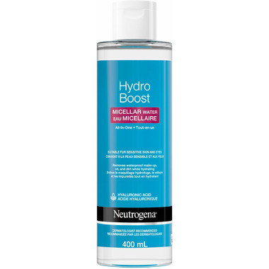 Neutrogena HydroBoost Micellar Water All-in-One is a multi action cleanser that gently removes makeup and impurities while providing skin a boost of hydration so you can wash away the day. Our cleansing technology combined with Hyaluronic Acid works on even the most sensitive skin to gently remove make-up and impurities. This micellar water is formulated to effectively cleanse while boosting hydration. From a dermatologist-recommended brand, this all-in-one cleanser removes make-upeven waterproof mascaraחand helps draw out dirt and oil while boosting skin's moisture. To use, apply with a cotton pad over face and eyesno need to rinse. Removes make-up, dirt, oil, and impurities while boosting skin's hydration for 24 hours. Suitable for sensitive skin and ophthalmologist-tested to be gentle around eyes. This cleanser is also non-comedogenic, so it wonגt clog pores. Comes with 400-millillitre bottle of hydrating micellar water facial cleanser.