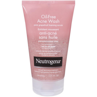Treat breakouts while gently exfoliating your skin with Neutrogena Oil-Free Acne Wash Pink Grapefruit. Designed for acne-prone skin, this foaming scrub helps clear blemishes, pimples, and blackheads, while providing an uplifting blast of grapefruit. This foaming scrub features gentle microbeads that smooth away roughness without over-drying for clean and healthier-looking skin. This scrub comes in a 125-millilitre tube.