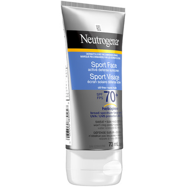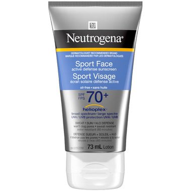 Play and sweat hard outdoors under the sun with Neutrogena Sport Face Active Defense Sunscreen Lotion with Broad Spectrum SPF 70. Ideal for vigorous & active outdoor activity, this facial sunscreen resists wear off from water, rubbing, sweating, or wiping.