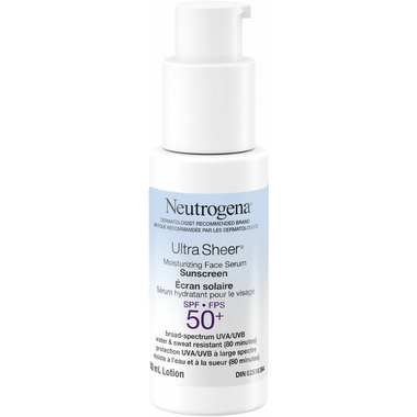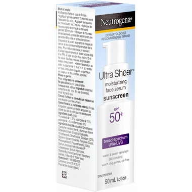- Neutrogena Ultra Sheer Moisturizing Face Serum Sunscreen SPF 50+ moisturizes and helps protect your skin against sun damage. This product comes in a 50-millilitre bottle of moisturizing face serum sunscreen with SPF50+.