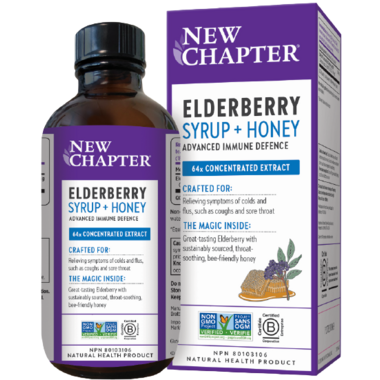 Medicinal Ingredients: (Per 1 Teaspoon) Eldercraft European Black Elderberry extract 50 mg (Sambucus nigra L)(fruit) ME 12:8:1 QCE 640 mg. Non Medicinal Ingredients: Honey, elderberry juice concentrate, water and maltodextrin