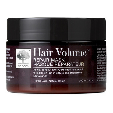 Hair Volume Repair Mask contains apple, coconut and hydrolyzed rice protein, which helps rebuild the hair's moisture balance and strengthens the hair strands. For optimal results, we recommend using Repair Mask in combination with the other products in the Hair Volume series.