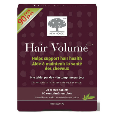 Hair Volume is an advanced formulation of bio-active nutrients based on the latest scientific research. It has been developed by New Nordic's expert's with specific apple procyanidin B2 extract and nutrients to contribute to the maintenance of normal hair. The natural extracts and nutrients of Hair Volume are delivered via the bloodstream directly to the hair root and dermal layers of the scalp where they are needed most. Hair Volume also contains support for normal hair pigmentation and for your skin and nails.