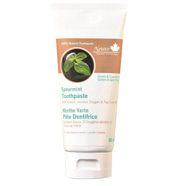 Newco Spearmint Natural Toothpaste is an all natural Sodium Lauryl Sulphate-free toothpaste enhanced with Aerobic Oxygen and Tea Tree Oil. Baking Soda and Calcium Carbonate provides a gentle, non-abrasive cleanse using Yucca as the foaming agent. The naturally preserved formula is sweetened with Stevia.