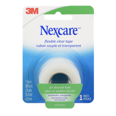 A porous, clear tape for use on active, hard to bandage areas like knees, elbows, fingers or where stretching occurs. The #1 clear tape in hospitals. Hospital brand - Transpore Surgical Tape