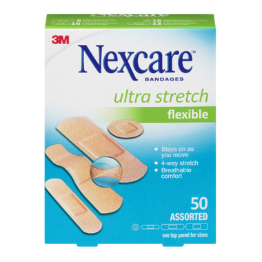 The soft, velvety material of Nexcare Comfort Bandages stretches and conforms for maximum comfort.