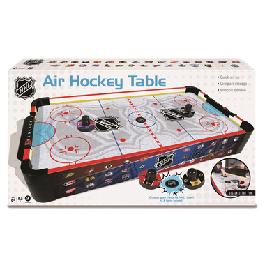 Features a simple set up that doesnt require any tools, and solid construction ensures powerful airflow for fast-paced action! Personalize with your favourite NHL squad, all 31 teams are included. Measures 16ҔL x 8.75W x 2.75ԔH. Requires 8 AA batteries (not included).