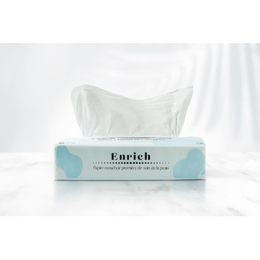 The Nice Bum Enrich is the world's softest and smoothest facial tissue. No dust, silky touch, and never hurts your skin. Made with plant-based luxurious ingredients.