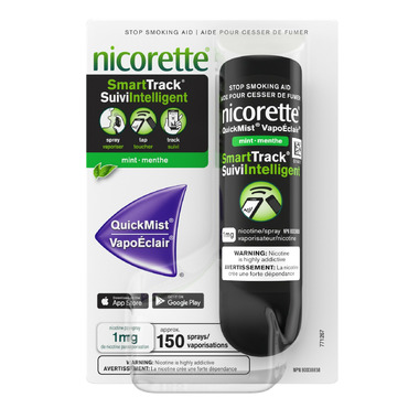 Fight back against nicotine cravings so you can quit smoking for good with Nicorette QuickMist SmartTrack Nicotine Mouth Spray. Designed to help you successfully manage nicotine withdrawal symptoms, this fast-acting mouth spray with a refreshing mint flavour contains 1 milligram of nicotine per spray to reduce cravings in 60 seconds and help double your chances of quitting successfully. The nicotine replacement therapy (NRT) mist provides a lower level of nicotine to your blood than cigarettes to reduce your body’s need for nicotine and decrease withdrawal symptoms such as irritability, frustration, anxiety, difficulty in concentration, and restlessness. An easy and convenient way to manage cravings anytime and anywhere.