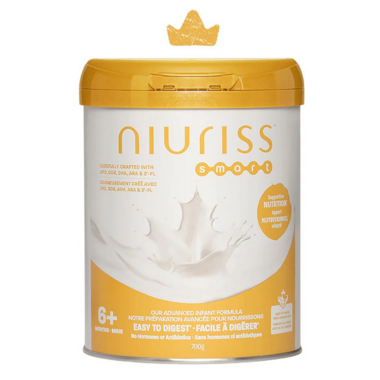 Niuriss Smart (6+ months) is the most advanced follow up formula, thoughtfully designed for your babys growing needs. Inspired by the natural nourishment of breast milk, it provides key nutrients to support physical growth, immune health, and digestive comfort. Made in Canada, it helps make the transition smoother so you can feel confident at every step of your feeding journey.