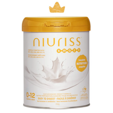 Niuriss Smart (0-12 months) is the most advanced formula, inspired by the natural nourishment of breast milk. It provides key nutrients for immune health and brain development, with digestive comfort in mind. Made in Canada, it helps support a gentle transition so you can feel confident at every step of your feeding journey.