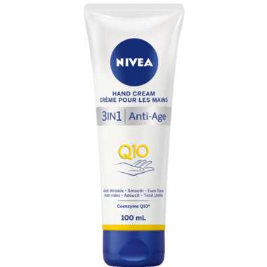 NIVEA 3in1 Q10 Anti-Age Intensive Care Hand Cream with Q10 complex to visibly reduce the appearance of fine lines and wrinkles, smooth your hands & even your skin tone.