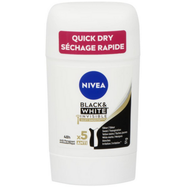 Searching for an effective anti-perspirant? The NIVEA Black & White Silky Smooth Dry Spray you know and love is now in a stick formula. Feel smooth, fresh, and protected no matter what you're wearing. With effective 48hr protection against odour, the new Silky Smooth Anti-perspirant Stick for women, has a quick-to-dry formula leaving no residue, so you can stay confident wherever your day takes you.