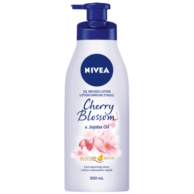 The NIVEA Oil Infused Cherry Blossom & Jojoba Oil Body Lotion is a moisturizing body lotion that is sure to indulge your senses. Gently formulated with cherry blossom essence and jojoba oil, this fast-absorbing lotion provides 24h hydration without leaving greasy product residue. Enjoy deep moisture and smooth, radiant looking skin all day long.