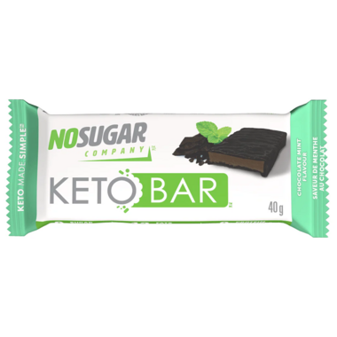 The No Sugar Keto Bar is the first of its kind! It is a creamy, melt-in-your-mouth, delicious snack that has the perfect keto snack makeup: 75% fats, 20% protein, and has NO SUGAR. The No Sugar Keto Bar Chocolate Mint is a keto-friendly snack, packed with flavourful mint, custom dark chocolate, 100% real nut butters and plant-based protein, making it the best keto snack to add to your pantry!