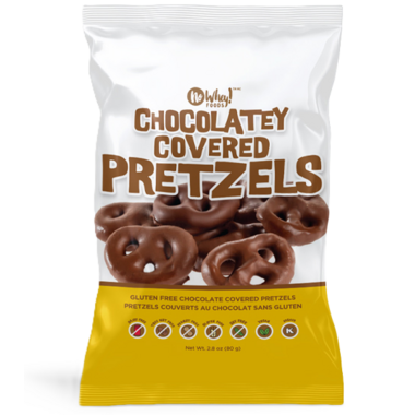 These chocolate covered pretzels are perfect for celebrating special events, birthdays, school lunch, and as a delicious addition to any snack time! These treats are free from the Top 9 Common Food Allergens, and are Dairy Free, Peanut Free, Nut Free, Soy Free, Wheat Free, Egg Free, Sesame Free, Gluten Free, Artificial Color/Flavor Free, and Vegan!