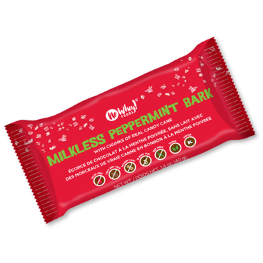 No Whey Foods Milkless Peppermint Bark is a milk-like chocolate bar made with chunks of real candy cane! Perk up your favorite milk-like chocolate with the crisp, bright taste of peppermint! Each bite of dairy free, vegan chocolate is packed with chunks of all natural peppermint candy canes. It's the perfect way to get into the holiday spirit and also get your chocolate fix!