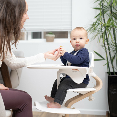 Nomi easily transforms from a raised bouncer for your newborn—to a high chair—to a chair, so your child is positioned in the most comfortable & ergoNOMIc position from newborn all the way to adulthood, holding up to 330 lbs. Unlike traditional high chairs that cannot be used until your baby can sit up on their own, Nomi allows you to bring your newborn up to the table with the addition of the Nomi Baby raised bouncer attachment.