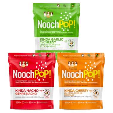 NoochPOP! The savoury popcorn seasoned with Nooch (nutritional yeast) that makes this a vegan cheesy popcorn. Scrumptiously different! The flavor that started it all! Parma-cheesy, hearty & richly umami.