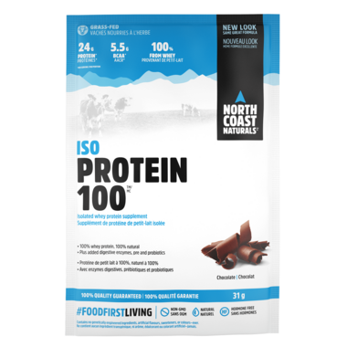 North Coast Naturals Iso Protein 100 is a 100% natural, grass-fed isolated whey protein supplement.  With added digestive enzymes, pre and probiotics.