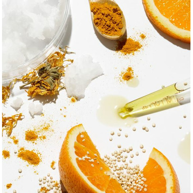 Sodium coco sulfate, coconut oil, cocoa butter, jojoba oil, calendula, shea oil, hemp seed oil, apricot seed oil, (essential oils of: neroli and sweet orange), d-panthenol, turmeric, and hydrolyzed quinoa protein