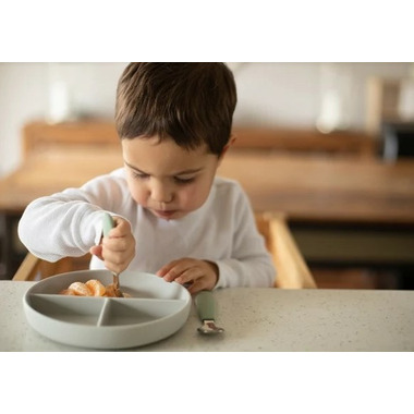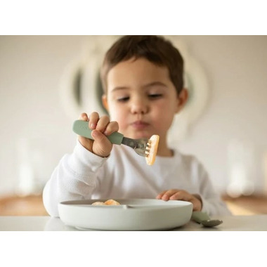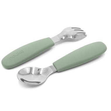 Self-feeding is simple and safe for little ones with Nouka's Toddler Cutlery Set. This set includes a fork and spoon with smooth edge design for safety. The soft silicone handle allows for a comfortable grip as they practice self-feeding. Made from food grade silicone and stainless steel that is dishwasher safe, this dinnerware set is easy to clean, durable, and long-lasting. The Toddler Cutlery Set is available in an array of calming, modern colours for your little one.