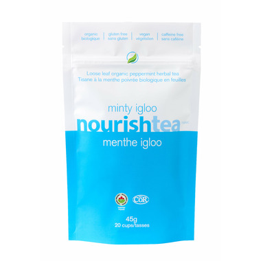 Loose leaf organic peppermint herbal tea. The Minty Igloo is nourishtea is made organic and kosher.
