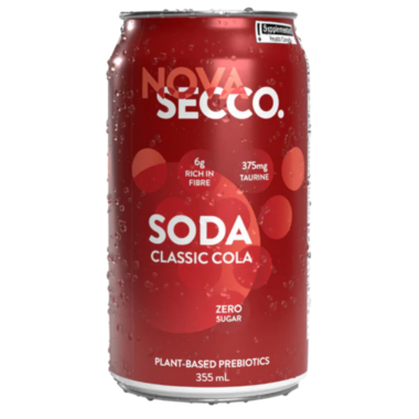 Novasecco Classic Cola Prebiotic Soda. Rich and familiar, the naturally sweetened base highlights the nostalgic essence of the bold flavour.