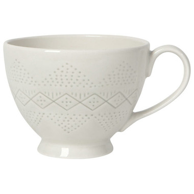Take a sip of tea from a pretty pastel mug. The debossed surface adds tactile intrigue while an interior motif makes for a delightful surprise.