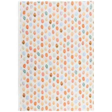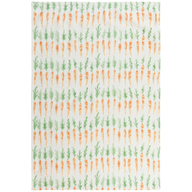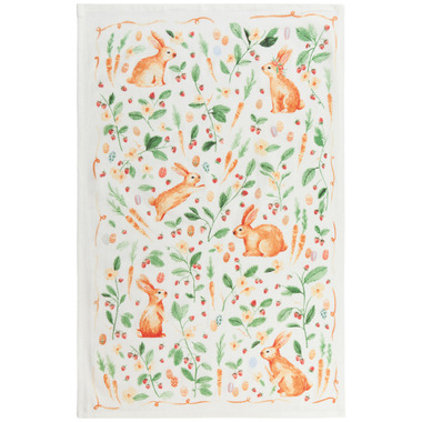 Hop into a pastoral scene where bunnies graze among bunches of berries and carrots. Delicately placed pastel-toned Easter eggs gently signal the arrival of spring.