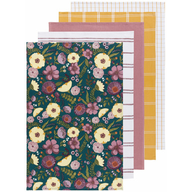 Enter a sundappled, tangled garden and welcome the simple joy of a clutch of hand-picked blossoms with this lilac and golden-hued set of dishtowels.