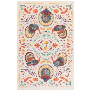 Add life and character to your kitchen with this fun and colorful printed and woven cotton Autumn Plenty dishtowel. A perfect combination of form and function, this towel will make washing up less of a chore. Plump pumpkins, rotund turkeys, and fall foliage flow colorfully across the surface of this collection, exuding gratitude for Autumn’s offerings.