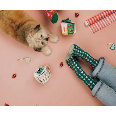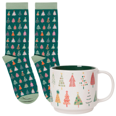 Bright, sassy, and very Christmassy, this set of socks and mug is a colorful celebration of glitzing and glamming up the home for the holidays.