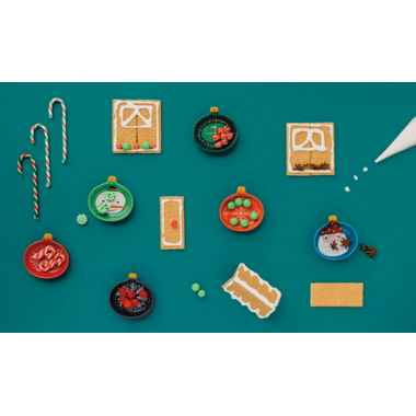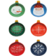 Baubles bedecked with smiling snow people, snowflakes, and the jolly one himself charm their way onto the items in this frolicking festive collection.