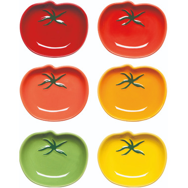 Playful colors of robust red and orange, sun-ripened yellow and green adorn the Heirloom Tomatoes Shaped pinch bowl set. Keep all ingredients close at hand like professional chefs with these bowls. Add a pinch of this and dash of that-spices, nuts and herbs are close by to enhance your dishes while cooking. With this design the table abounds with bright and bold varieties of Heirloom Tomatoes.