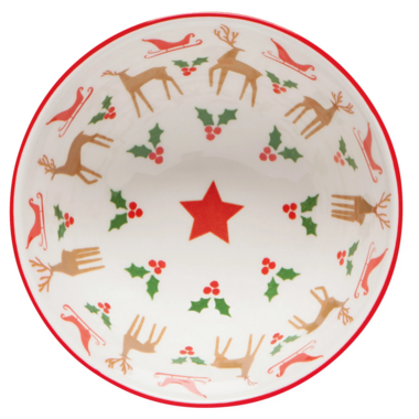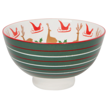 In a scene straight from a snow globe, we get a glimpse of Santa and his beloved, steadfast team hiding amongst the trees stamped onto this seasonal bowl. A tranquil woodland is the training ground for this jolly crew's annual Christmas Eve flight.