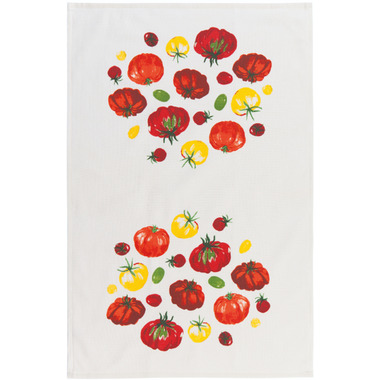 Playful patterns of robust red and orange, sun-ripened yellow and green adorn the Heirloom Tomatoes Printed Terry dishtowel. Soft, absorbent terry cotton makes a companionable canvas for this bright and beautiful print. This design is from the Heirloom Tomatoes collection.