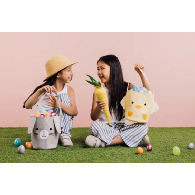 Blooming with character, these colorful baskets are ready to wait sweetly for a cotton-tailed visitor or to spring into action at the egg hunt. With a soft but sturdy structure, this reusable bag will be part of many Easter adventures.