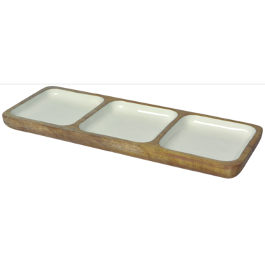 Now Designs Heirloom Mango Wood Divided Dish White