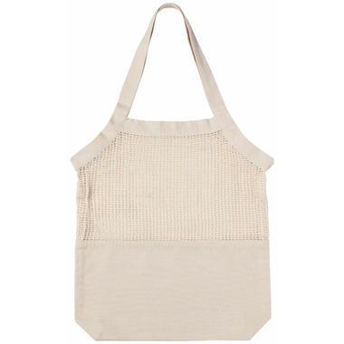 Your veggies, fruit, and other market finds are snugly supported by a sturdy canvas bottom and secured with a modern string top. Eco-friendly and 'au courant', you'll want to take this bag with you everywhere you go.