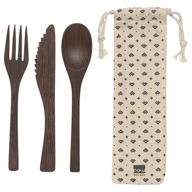 Now Designs' Wooden On The Go Cutlery Set is a perfect eco-friendly option for eating on the go. Includes cloth travel pouch.