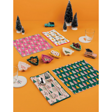 Bright, sassy, and very Christmassy, this collection of cocktail napkins are a colorful celebration of glitzing and glamming up the home for the holidays.