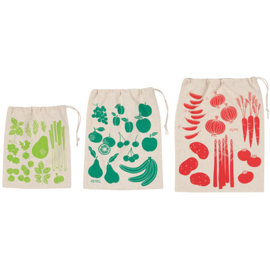 Make grocery shopping waste-free with reusable cotton produce bags. A set of three different sizes allows you to fit a variety of fruits and veggies, while the printed bag weight guarantees correct weighing.