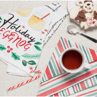 Share holiday spirit and cook up a batch of eggnog with the recipe on these Holiday Eggnog printed towels from Now Designs. From the kitchen to the dining room and beyond, these dish towels bring life and character to daily cooking and cleanup tasks. Drape a couple over your oven handle to enjoy their perfect combination of form and function.