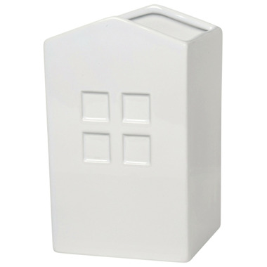 Utensil Crock is made from beautiful and durable white porcelain; This versatile storage container is shaped like a house with an opening to store cooking utensils.